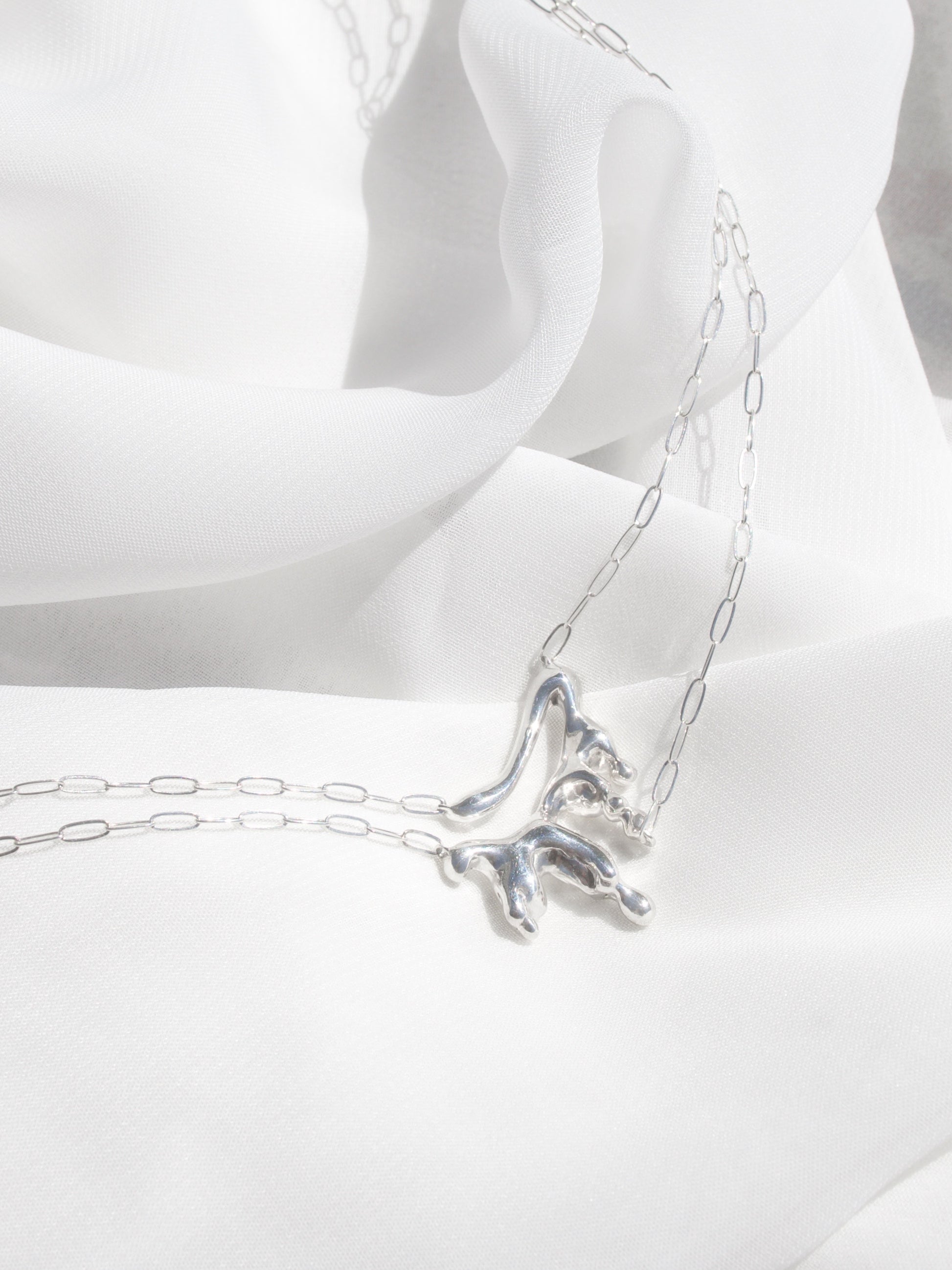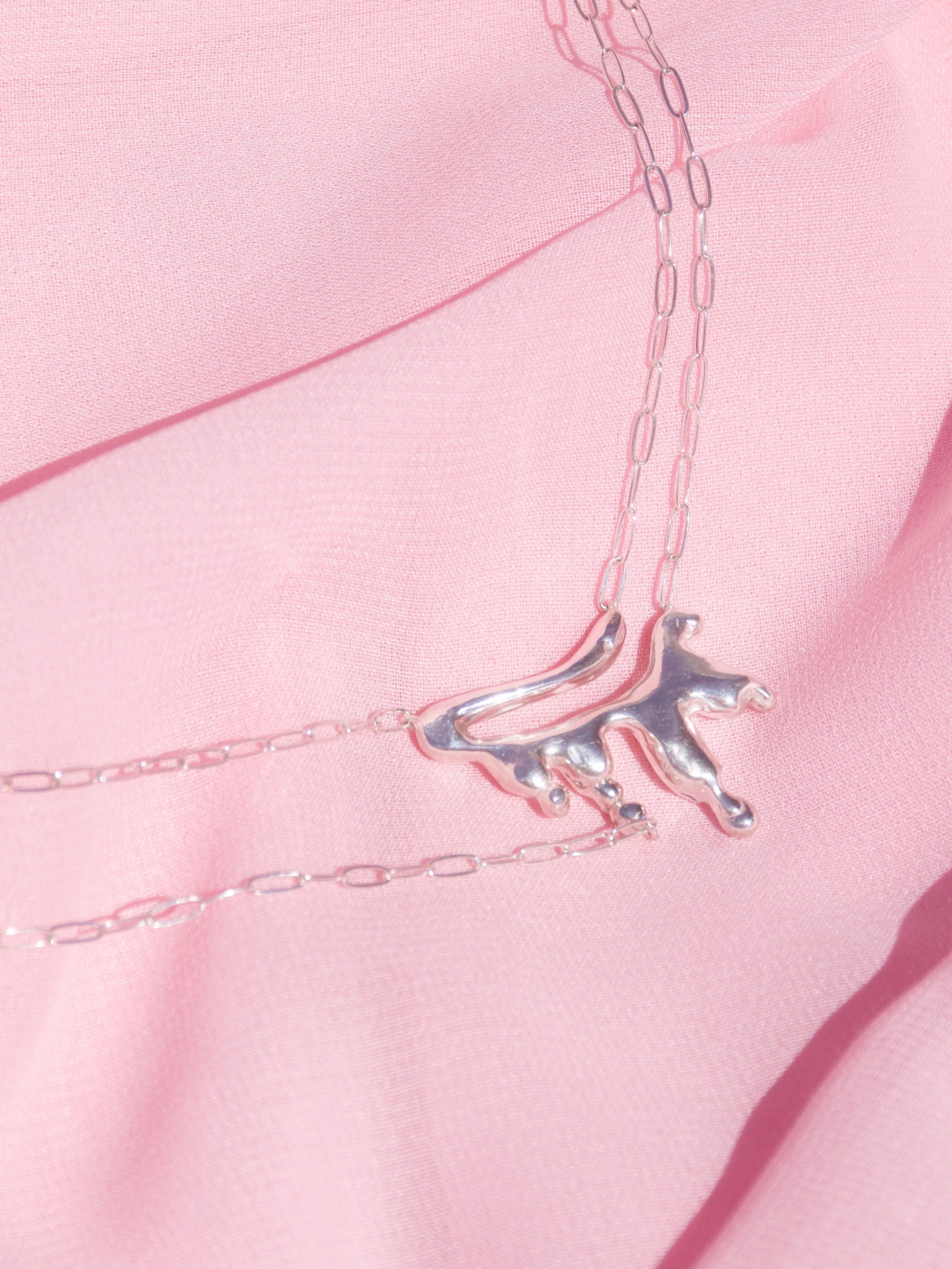 A tribute to the beauty and fluidity of the female form, the Reverie Necklace captures the essence of movement in a continuous, sculptural silhouette. Meticulously hand-carved in wax and cast using the lost-wax method, the pendant is truly one of a kind—never to be replicated. Suspended from four paperclip chains, its structure contrasts beautifully with the pendant’s organic curves, creating a harmonious balance of strength and softness.